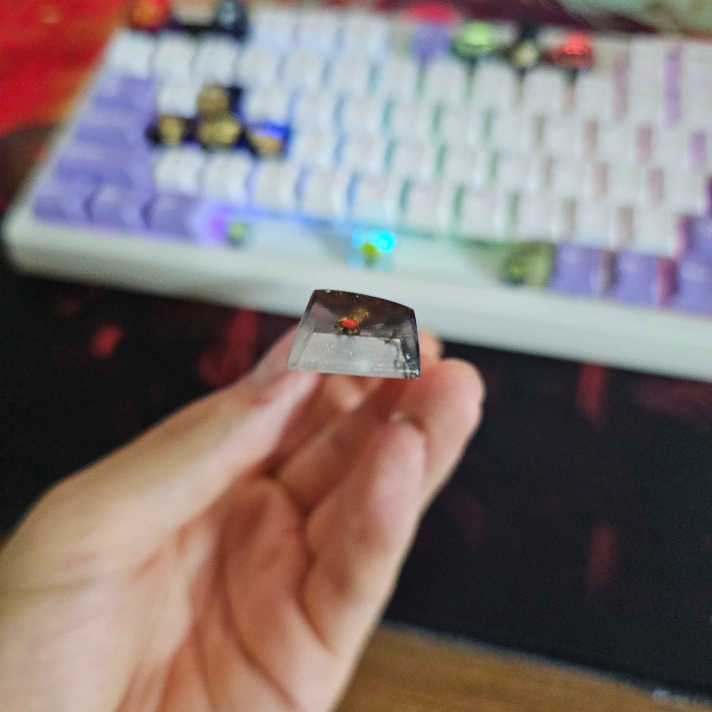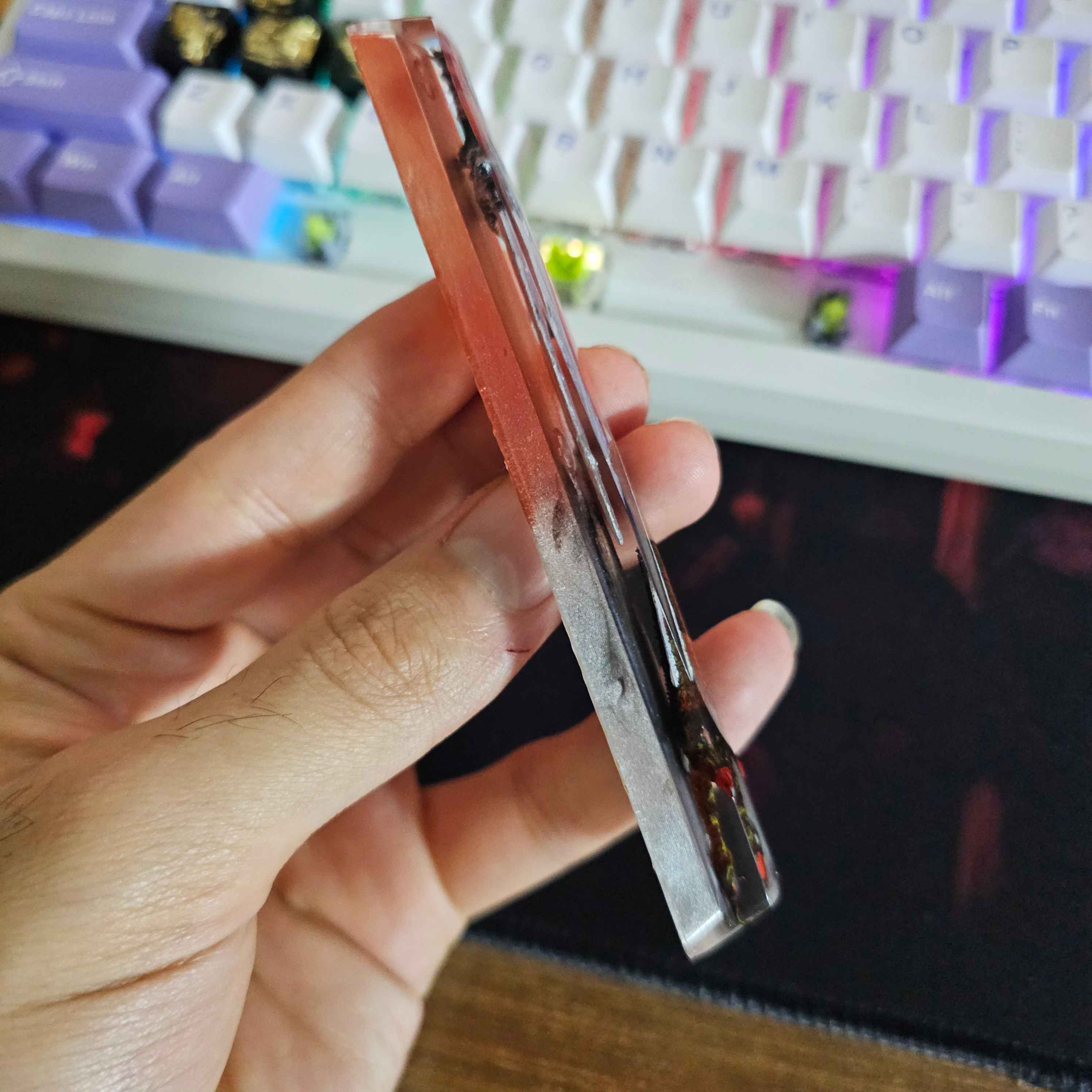 اگر از طرفدارای دنیای Devil May Cry هستی، این اسپیس کیکپ خاص دقیقاً همون چیزیه که باید روی کیبوردت باشه.در طراحی این کار از دو شمشیر افسانه‌ای بازی — Rebellion و Dark Moon — الهام گرفته شده تا حس قدرت، جزئیات تاریک و انرژی دنیای Dante رو به کامل‌ترین شکل منتقل کنه ⚔️هر جز از این کیکپ رزینی با دقت بالا و به‌صورت دست‌ساز ساخته شده. ترکیب دقیق رنگ‌ها و رزین اپوکسی باعث شده تا هم عمق طراحی شمشیرها دیده بشه، هم جلوه نوری خاصی روی سطح کار شکل بگیره — مخصوصاً در نور RGB، که جزئیات شمشیرها زنده می‌شن 🔥✨ ویژگی‌ها:طراحی اختصاصی بر اساس بازی Devil May Cryدو شمشیر Rebellion و Dark Moon در یک اسپیسساخته‌شده با رزین اپوکسی باکیفیت و ماندگارسازگار با کیبوردهای مکانیکال (Cherry MX / Gateron / Kailh)تولید محدود و دست‌ساز (Limited Edition)این اثر نه‌تنها یه کیکپ خاص برای کیبورد مکانیکاله، بلکه یه تکه از دنیای گیمه که روی میزت جا می‌گیره. برای گیمرها، کلکسیون‌دارها و عاشقای طراحی رزینی خاص، یه انتخاب منحصر‌به‌فرده.📦 موجودی این مدل محدوده، پس اگه دنبال کار خاص و کمیاب هستی، همین حالا سفارش بده.
