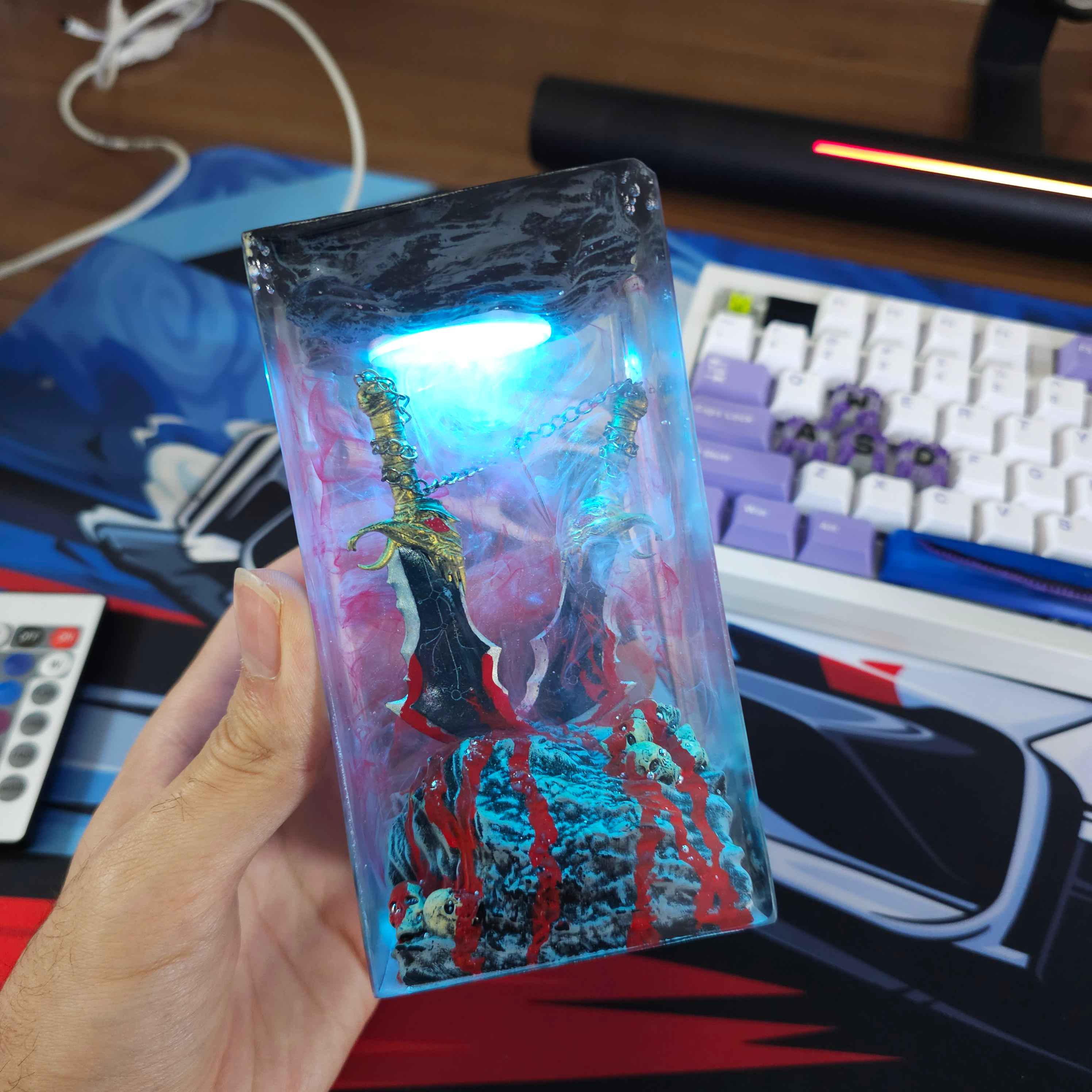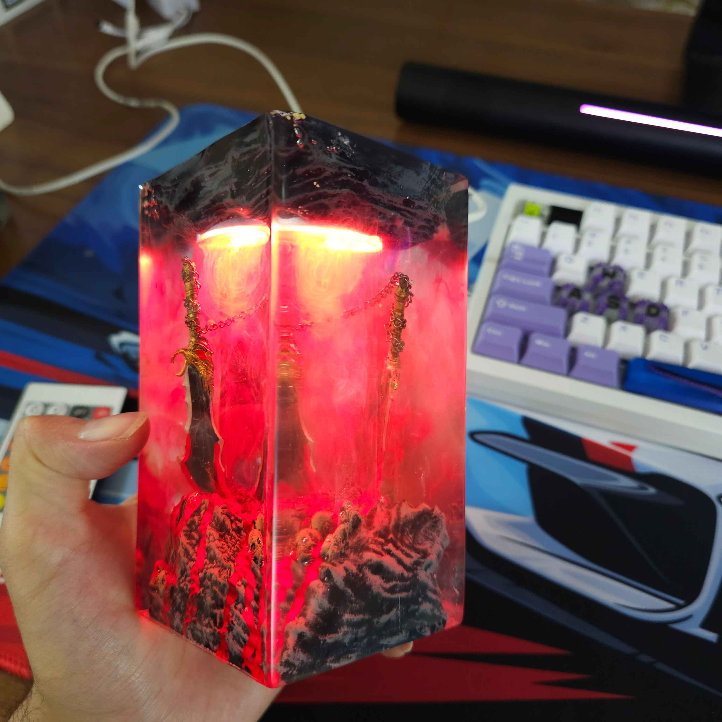 این چراغ خواب رزینی کاستوم با الهام از بازی محبوب God of War و شخصیت افسانهای کریتوس (Kratos) طراحی و ساخته شده است. درون این چراغ، دو شمشیر معروف کریتوس (Blades of Chaos) بهصورت دقیق و سهبعدی داخل رزین شفاف قرار گرفتهاند و جلوهای بسیار خاص و سینمایی ایجاد کردهاند.این چراغ بهصورت کاملاً دستساز تولید شده و با نورپردازی RGB قابل تنظیم، انتخابی عالی برای گیمرها، کلکسیونرها و طرفداران دنیای God of War است. ترکیب نور، رزین و جزئیات سهبعدی باعث شده این محصول هم کاربردی و هم دکوری باشد.مشخصات:الهامگرفته از بازی God of Warشخصیت: Kratosدارای دو شمشیر Chaos سهبعدیجنس: رزین باکیفیتنورپردازی: RGBدارای کنترلر تغییر نورابعاد: ۷ × ۷ × ۱۴ سانتیمترمناسب اتاق گیمینگ، دکور و چراغ خواب