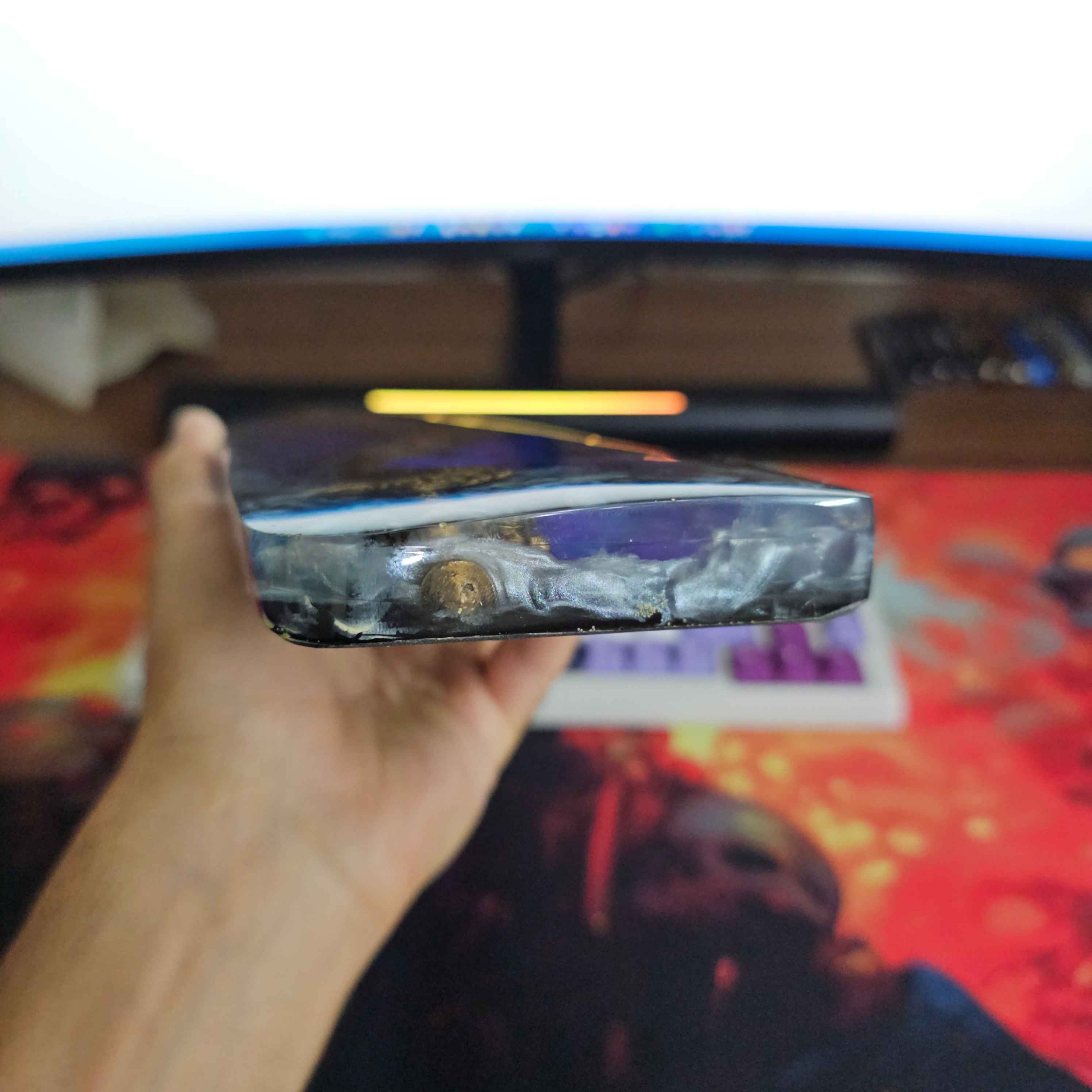 رزین استفادهشده در این محصول با دقت پرداخت و صیقل داده شده تا سطحی صاف، خنک و مقاوم در برابر خط و خش ایجاد کند. هر قطعه بهصورت دستساز ساخته میشود و طرح آن کاملاً خاص و متفاوت است — درست مثل یک اثر هنری کوچک روی میز شما.